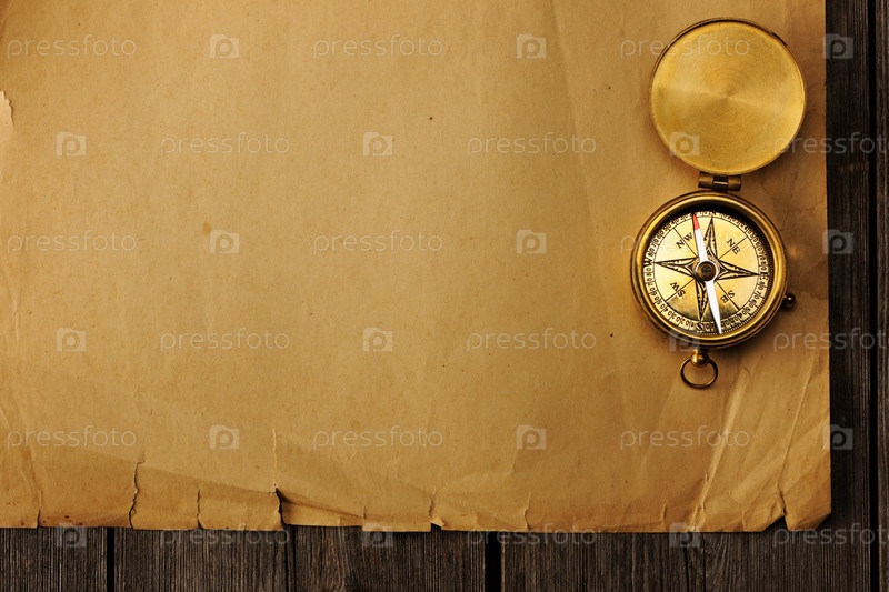 Антикварный медный компас на старом фоне