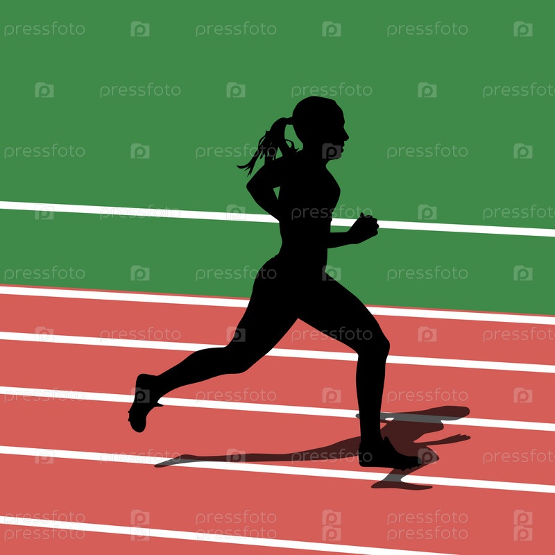 Бегущий силуэт на спортивном стадионе. Векторная иллюстрация