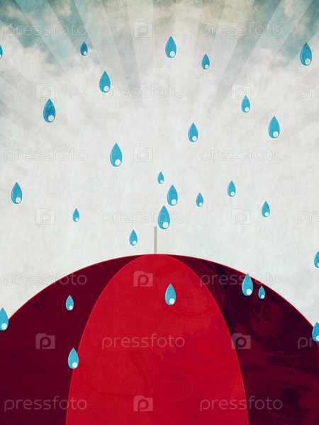 Красный зонт и дождь