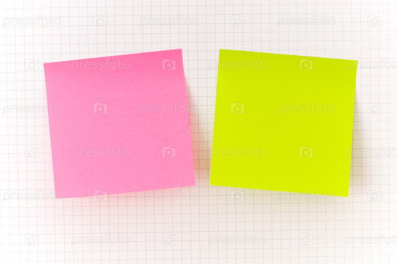 Два разноцветных клейких листочка для заметок на белой доске