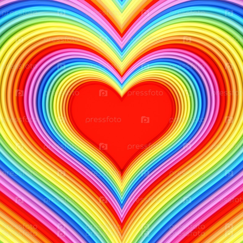 Красочное блестящее сердце с красным центром. 3D изображение высокого разрешения