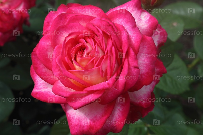 Красиво цветуая роза на фоне зеленых листьев