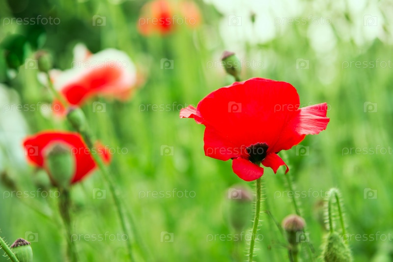 Красные маки, растущие в поле