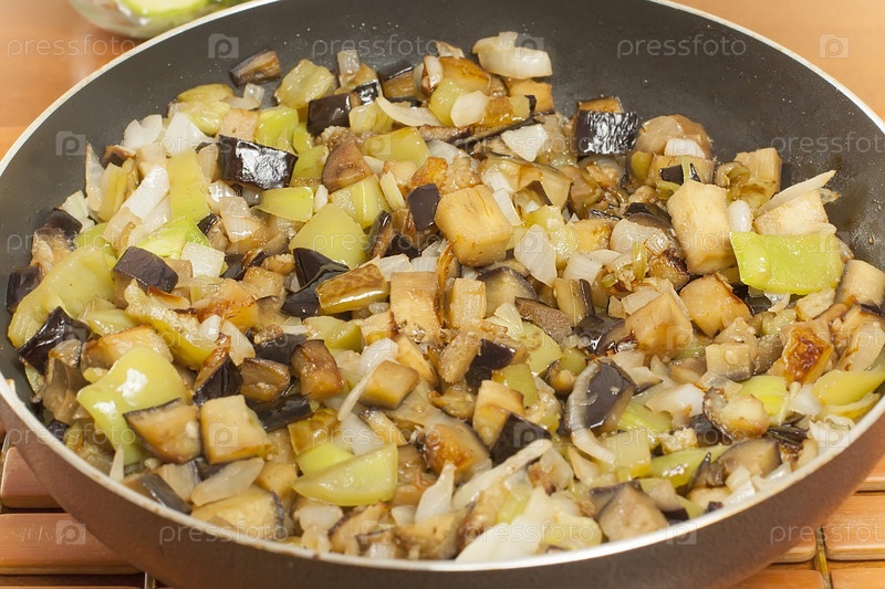 Ломтики овощей, жареные на сковороде