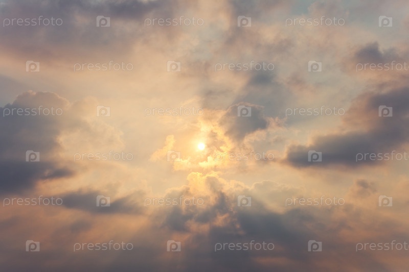 Небо с кучевыми облаками и ярким солнцем