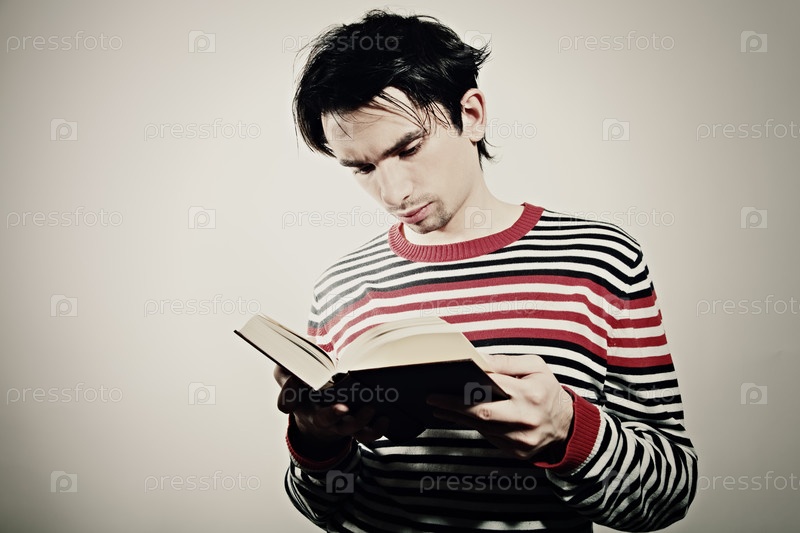 Молодой студент, читающий учебник
