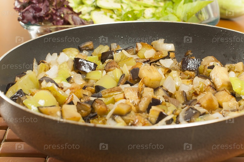 Ломтики овощей, жареные на сковороде
