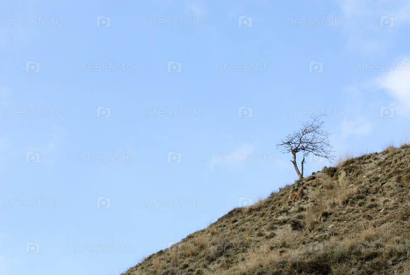 Одинокое дерево, растущее на склоне