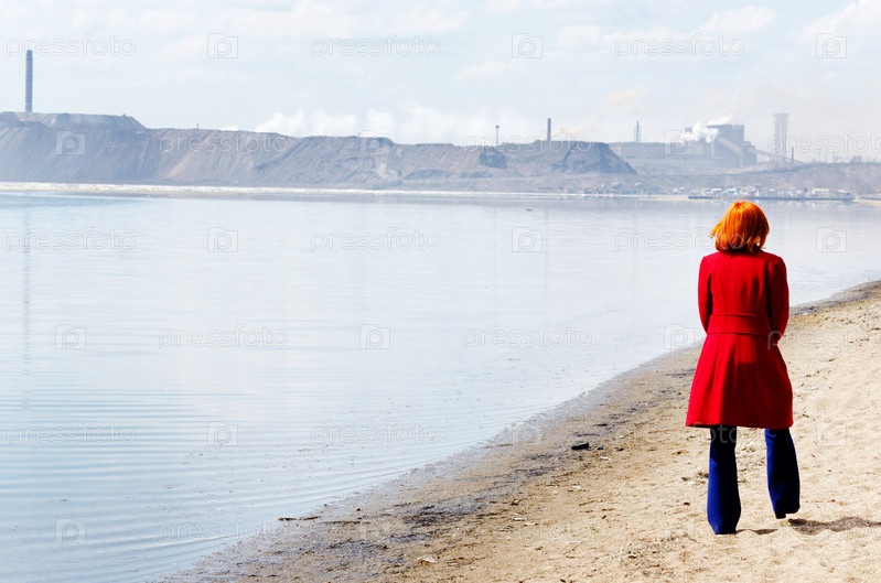 Молодая женщина идет одна по пляжу