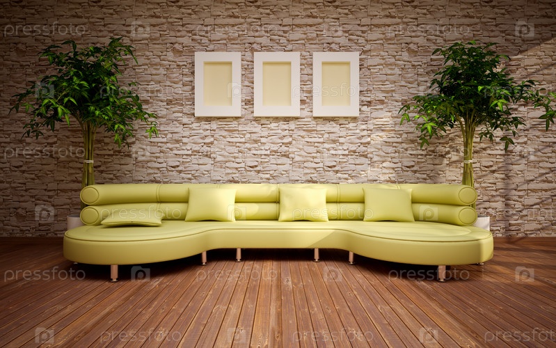 Минималистичный современный интерьер с лимонным диваном