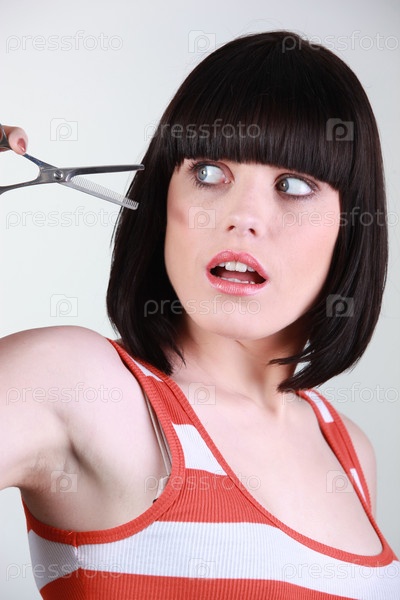 Женщина боится парикмахерских ножниц