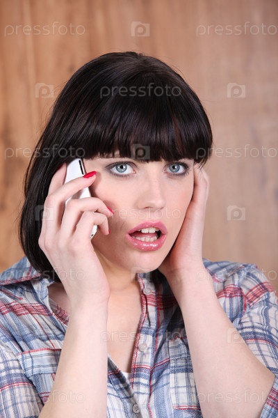 Шокированная женщина с мобильным телефоном