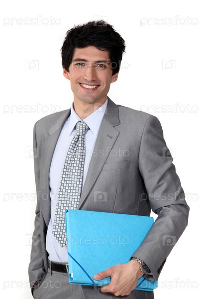 Молодой бизнесмен с голубой папкой
