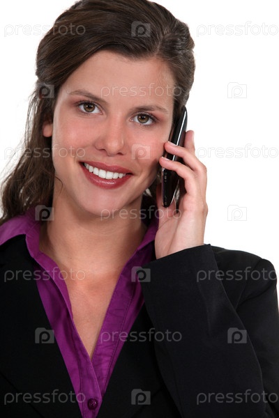Портрет красивой женщины-предпринимателя, разговаривающей по телефону