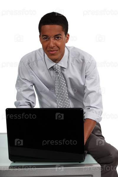 Портрет молодого бизнесмена с ноутбуком