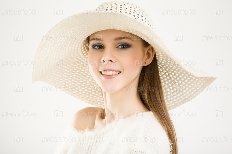 Красивая девушка в белой шляпе