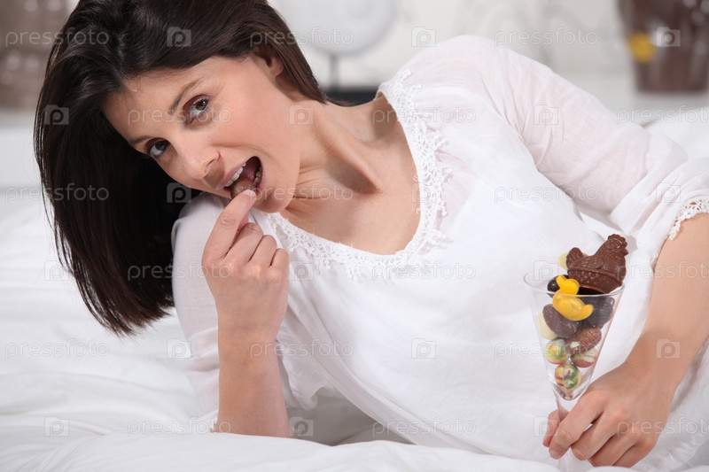 Женщина ест пасхальное яйцо