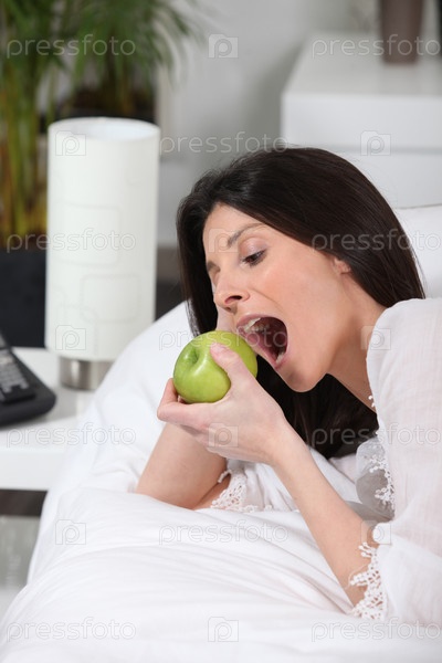 Женщина ест яблоко
