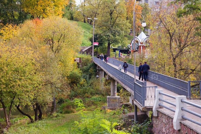 Люди на мосту в г. Коростень, Украина