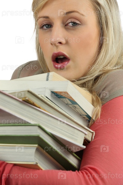 Молодая женщина со стопкой книг