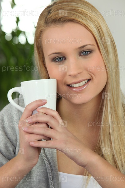 Молодая женщина с горячим напитком