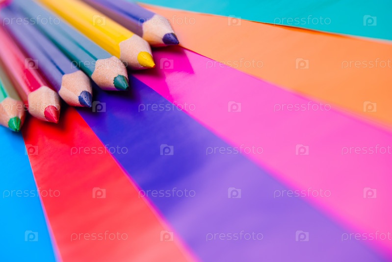 Цветные карандаши на цветной бумаге