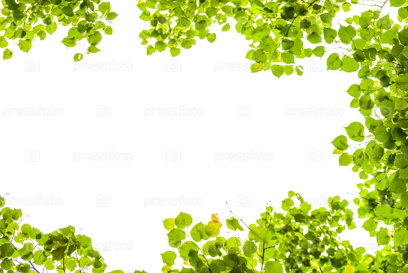 Рамка из листьев на белом небе