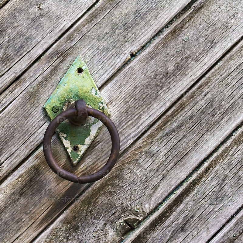 Винтажная круглая дверная ручка на старых деревянных досках