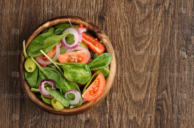 Салат с томатами, оливками и шпинатом