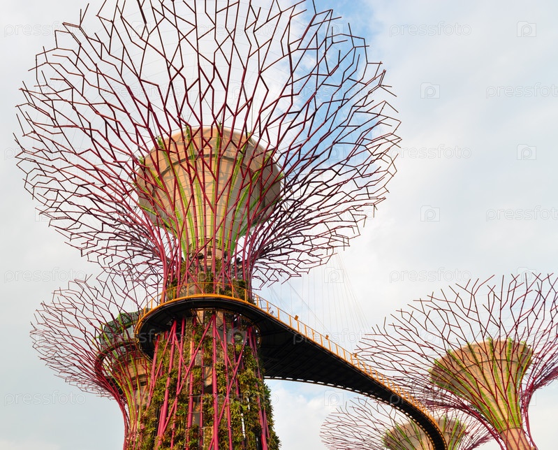 Пешеходный мост на огромных деревьях в Садах у залива, Сингапур