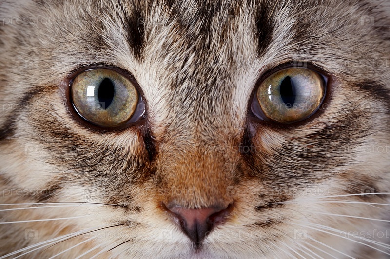 Глаза серого полосатого котенка