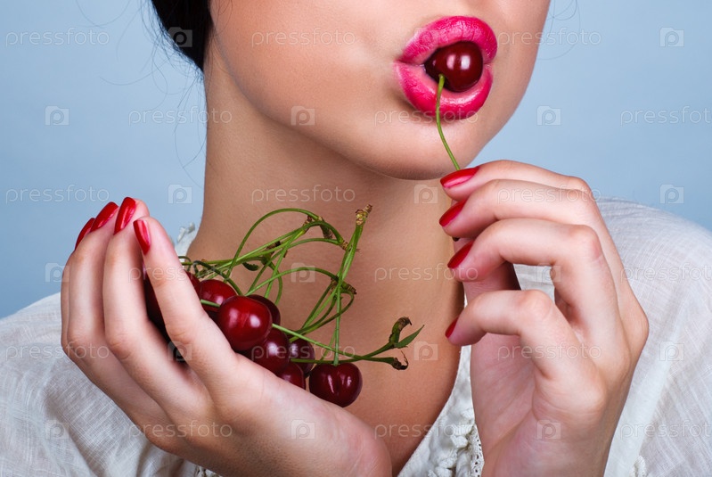 Художественный портрет с вишней во рту