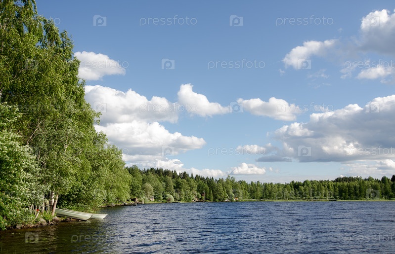 Берег озера. Летний пейзаж. Финляндия