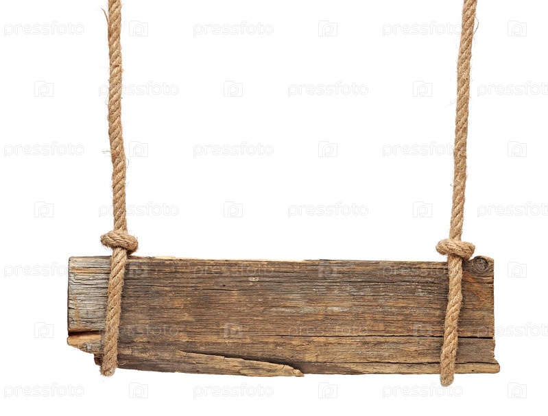 Пустой деревянный знак висит на веревке, изолированный на белом