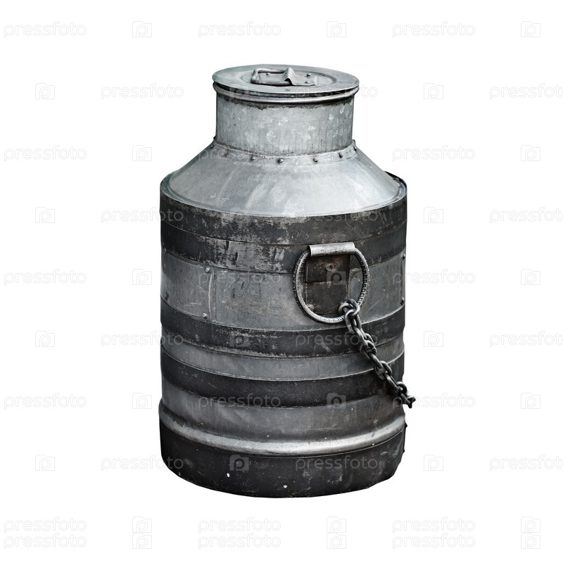 Винтажный стальной бачок, изолированный на белом