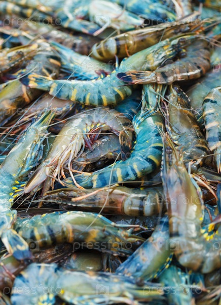 Креветки для продажи на рынке крупным планом