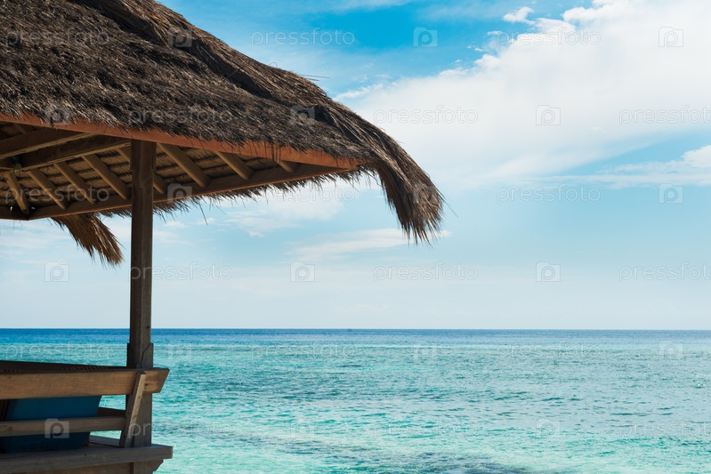 Павильон кафе на сваях на берегу океана