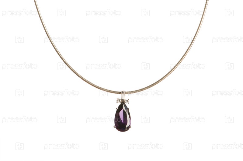 Подвеска на серебряной цепочке на белом фоне