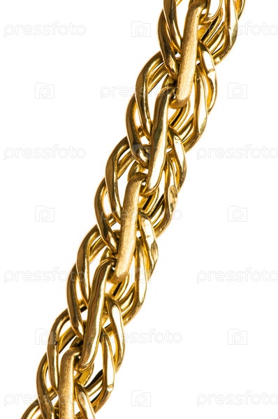 Фрагмент золотой цепи на белом фоне