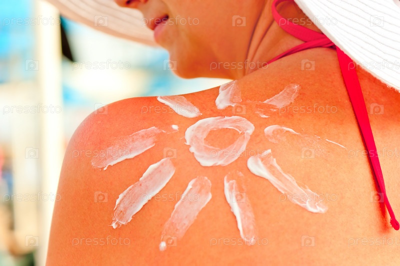 Солнцезащитный крем на плече женщины