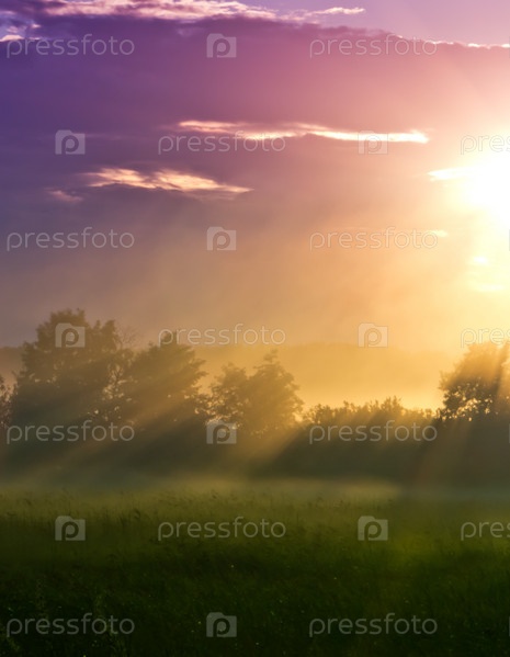 Лучи солнца в туманной долине