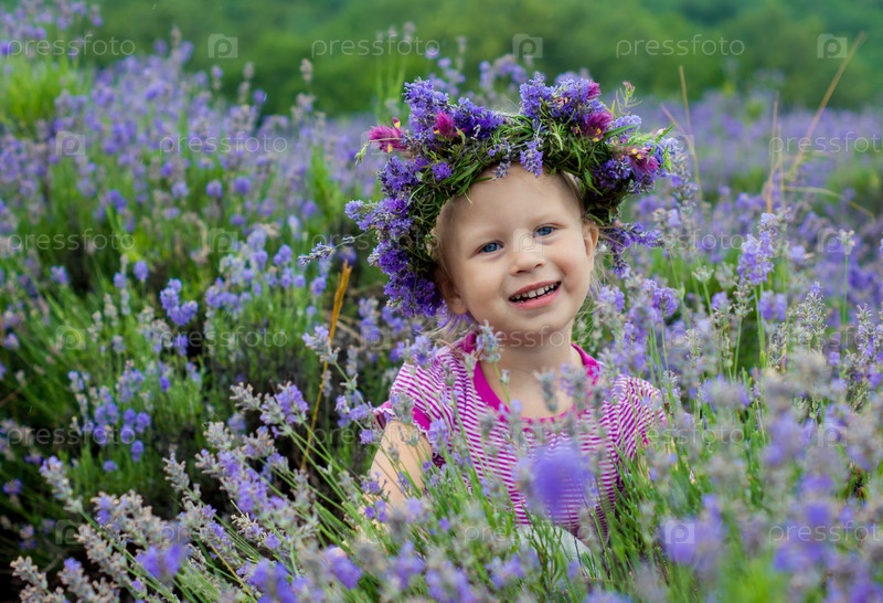 Красивая девочка среди цветов лаванды