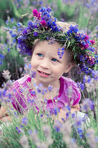 Красивая девочка среди цветов лаванды