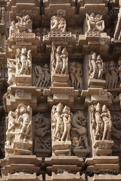 Деталь резьбы на храме в Кхаджурахо, Мадхья-Прадеш, Индия