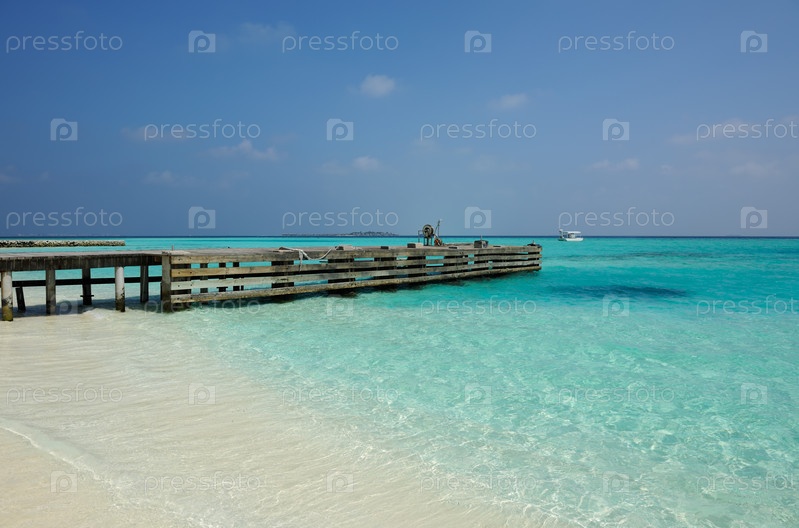 Красивый пляж с пристанью