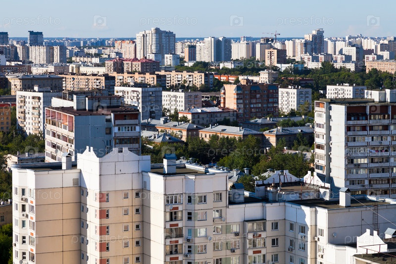 Вид сверху на городские дома в Москве