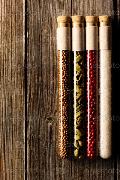 Специи в стаканах на деревянном столе