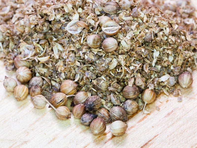Сушеные семена и молотый кориандр
