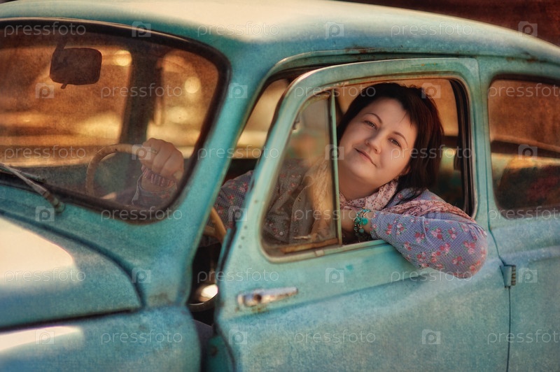 Девушка в старинном автомобиле
