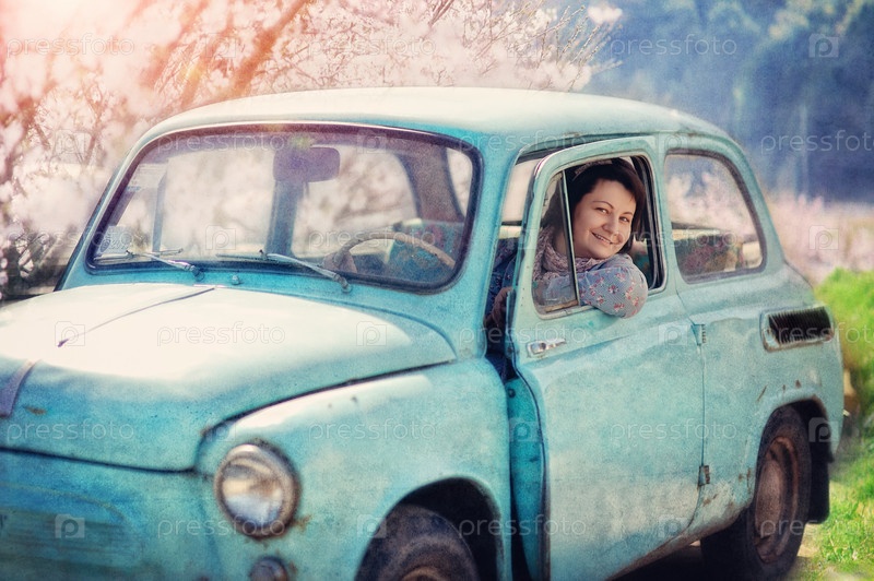 Девушка в старинном автомобиле